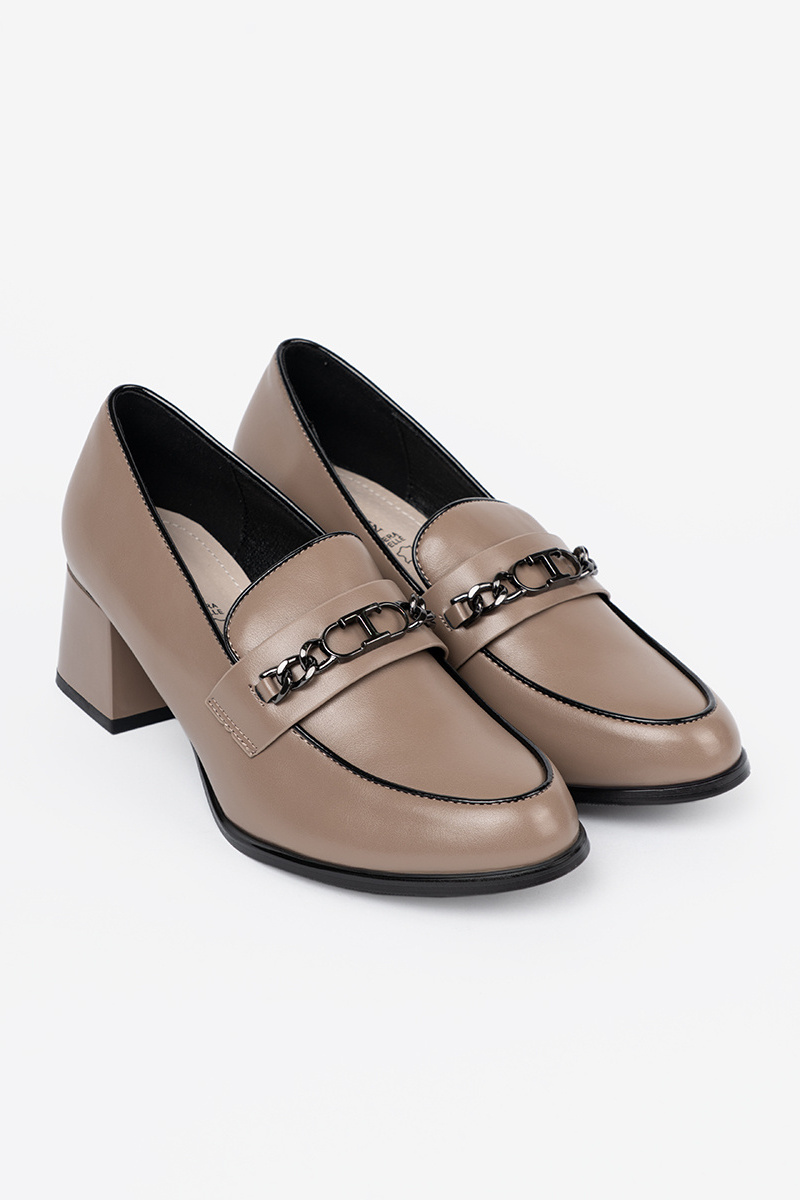 smėlio spalvos moteriški pusbačiai ant aukštakulnių