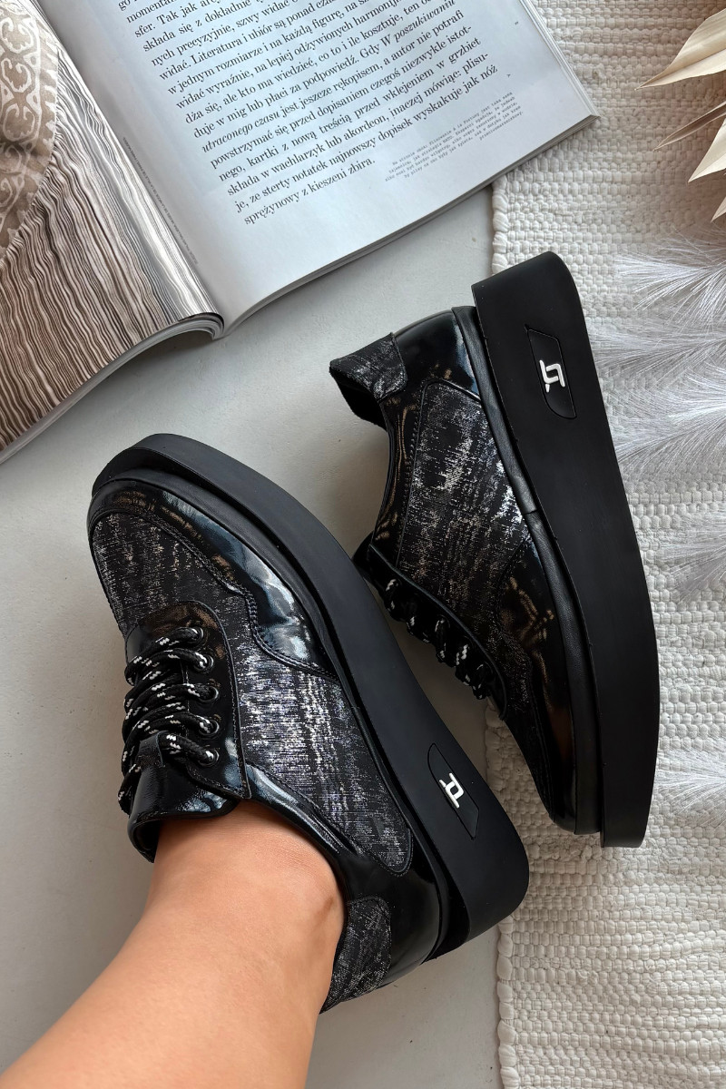 Odiniai moteriški suvarstomi batai su platforma Artiker 57C2043, juodos ir sidabro spalvos