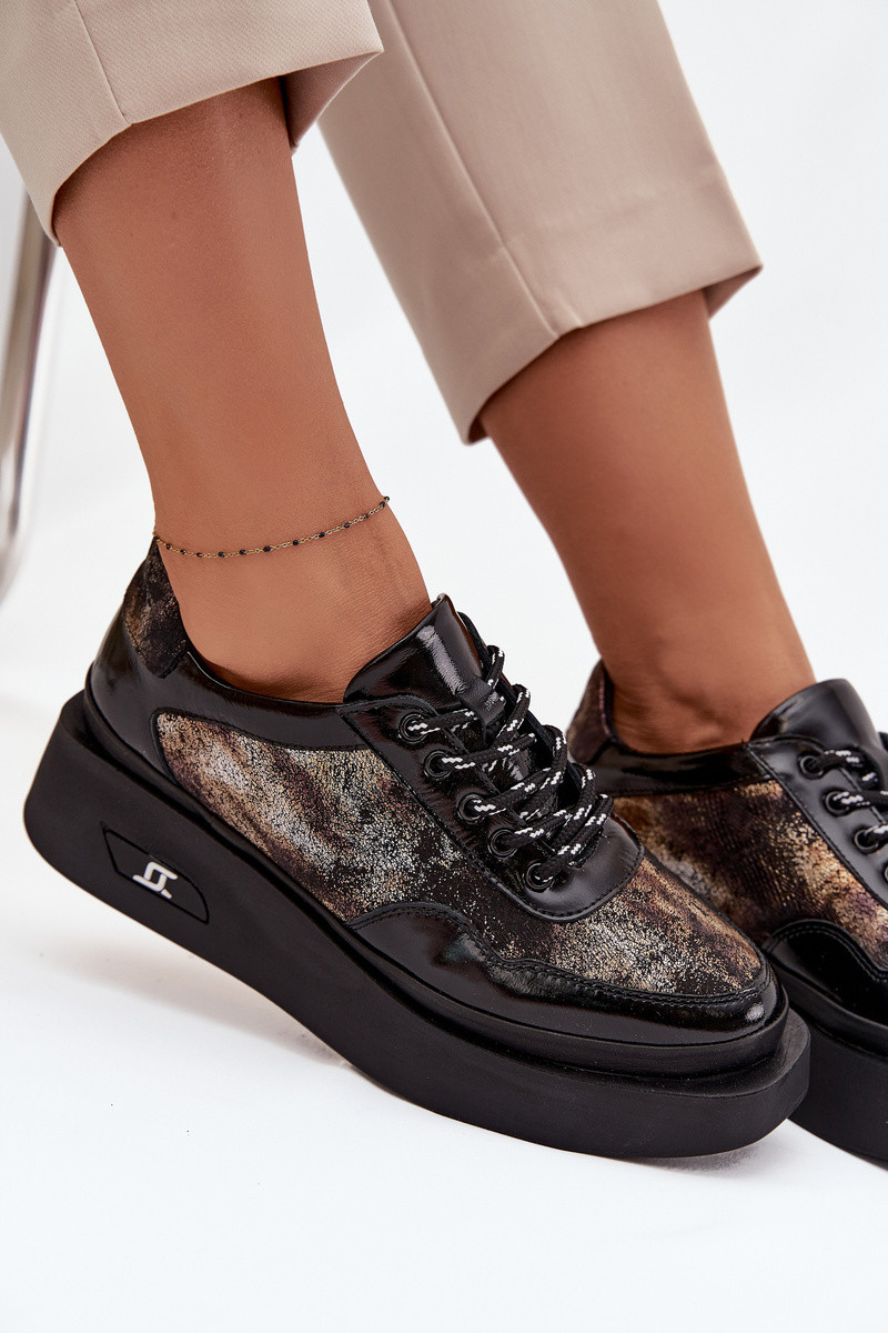 Odiniai moteriški suvarstomi batai su platforma Artiker 57C2042, juodos ir aukso spalvos