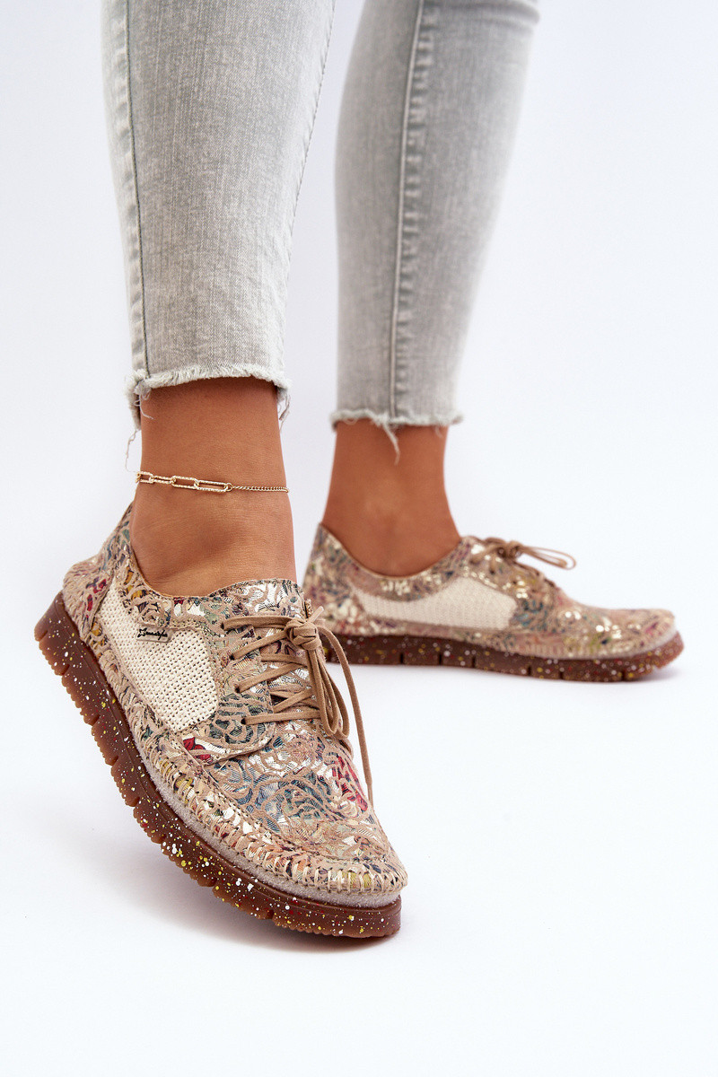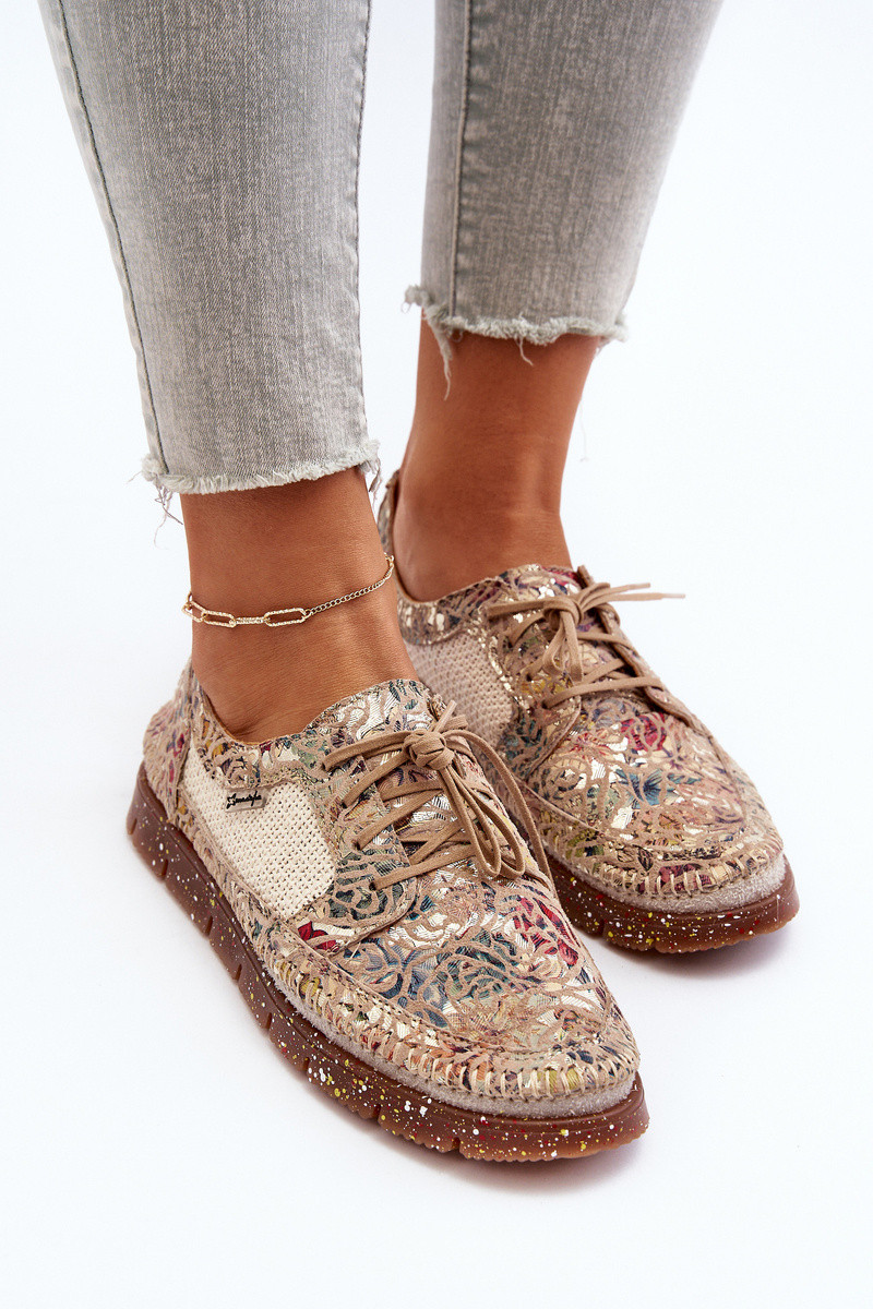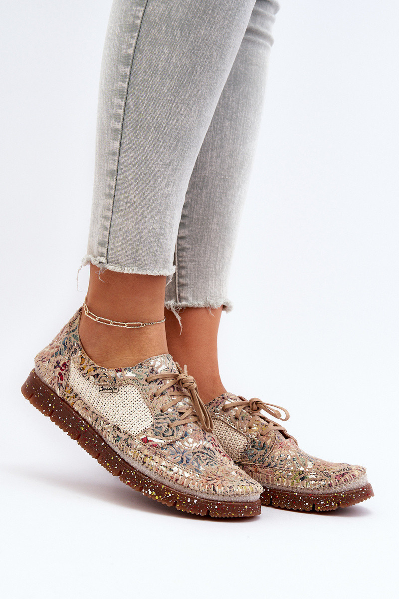Raštuoti moteriški bateliai 06347-04 smėlio spalvos