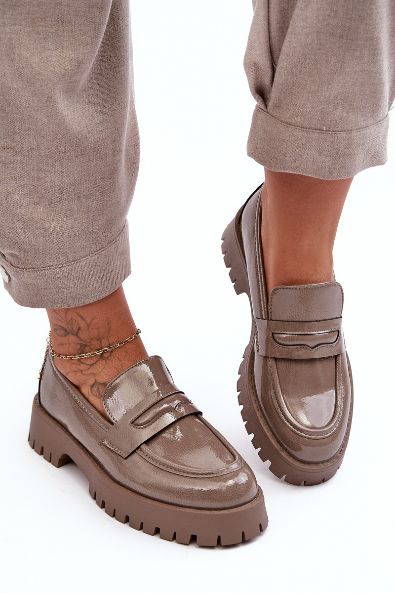 Batai su lako efektu mokasinai su plačiais kulniukais smėlio spalvos „Jannah"