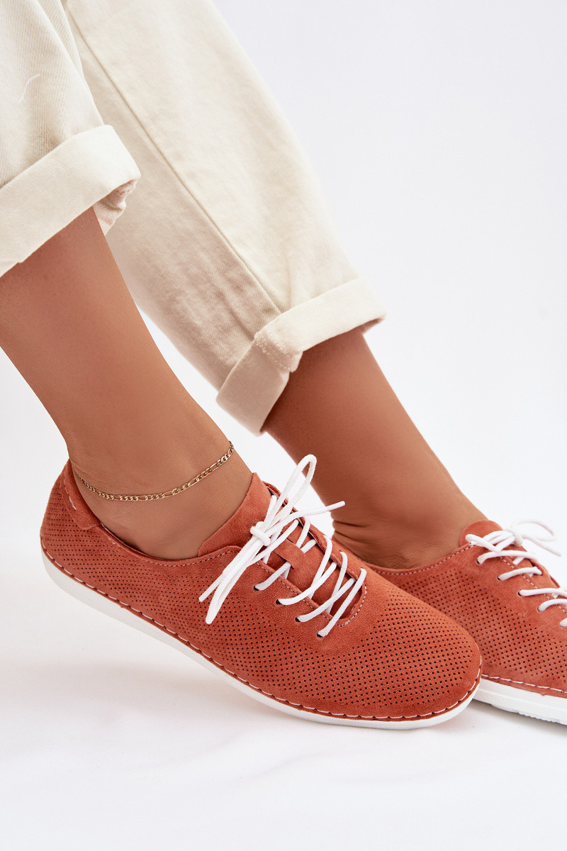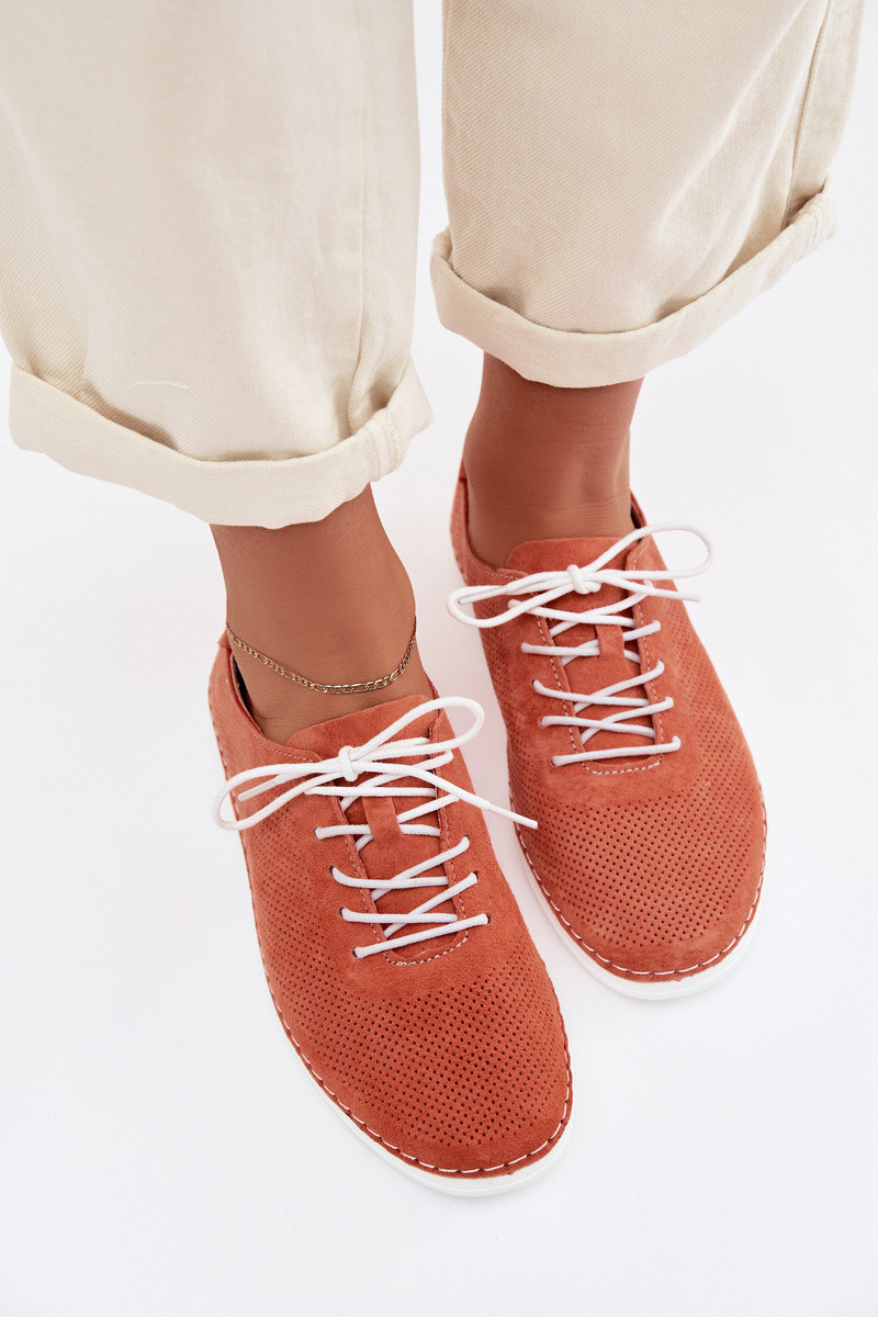 Moteriški batai iš natūralaus zomšo S.Barski LR61-7080 oranžinės spalvos