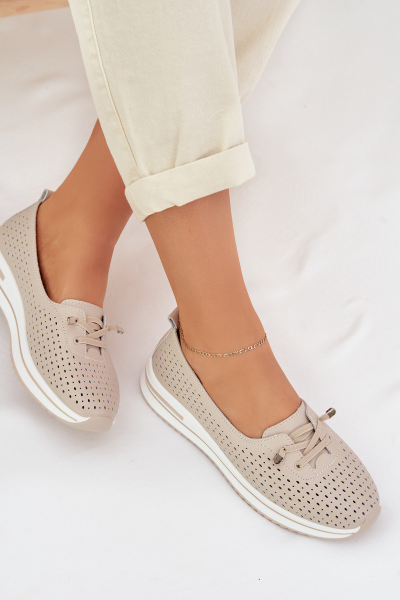 Moterų odiniai batai su ažūro elementais S.Barski LR61-7044 smėlio spalvos