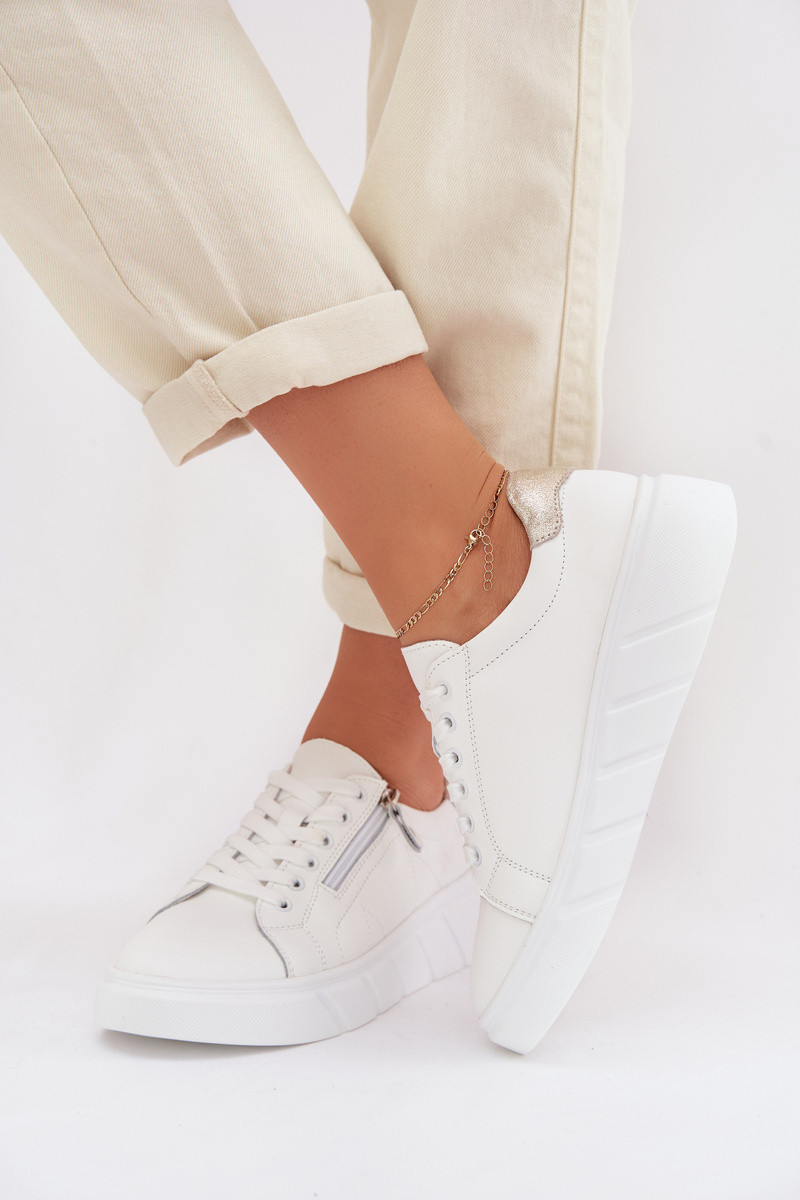 Moterų odiniai batai su užtrauktukais Althea baltos spalvos