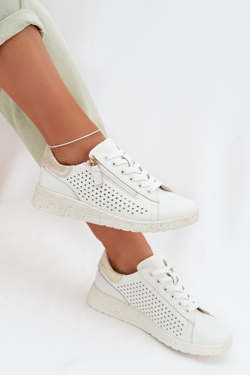 Odiniai moterų sportinio stiliaus batai su užtrauktukais baltos-aukso spalvos Kalorinne