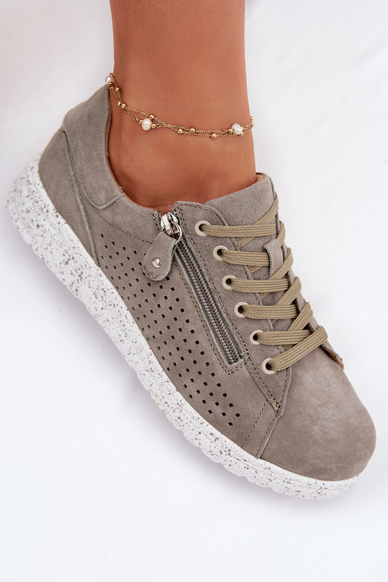 Moteriški zomšiniai batai su užtrauktukais Cemela chaki spalvos