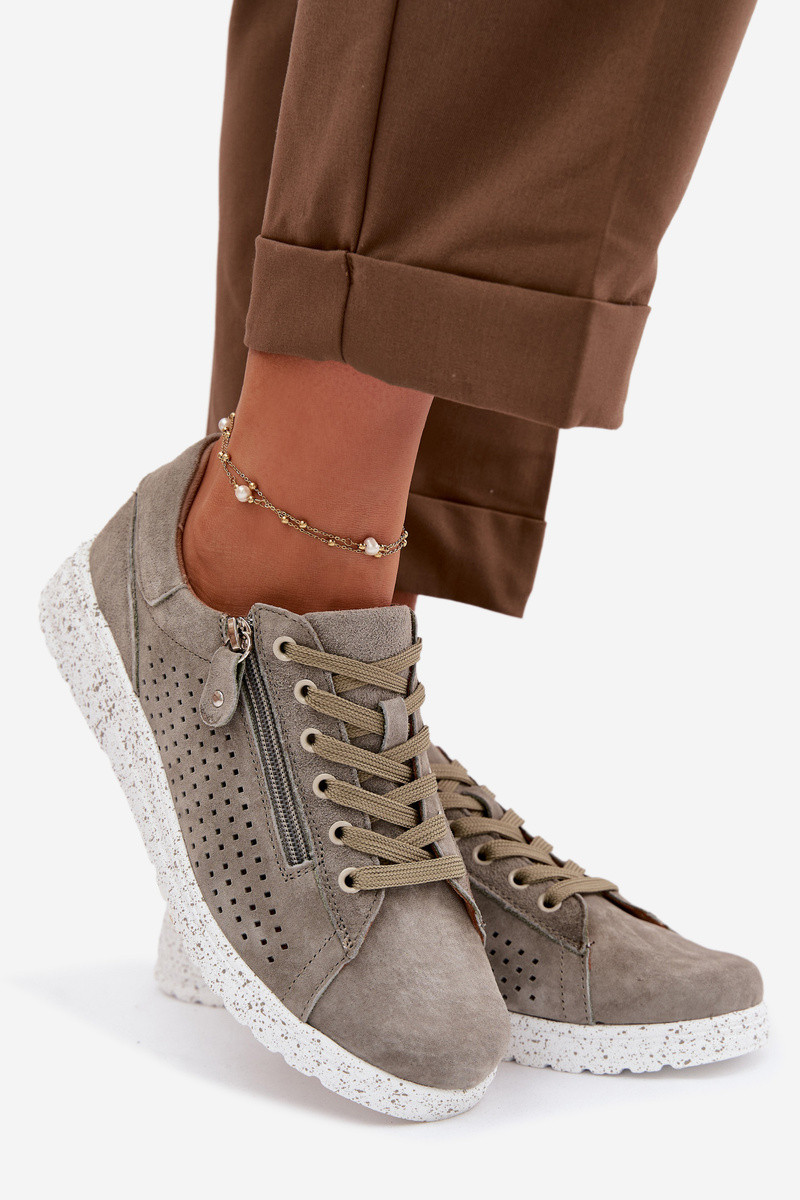 iš zomšos batai Moteriškas su užtrauktukais chaki spalvos Cemela