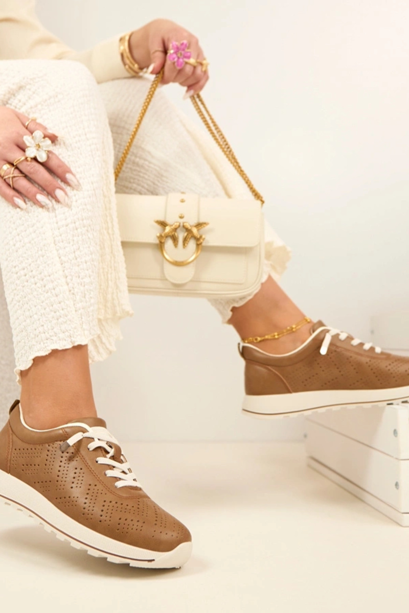 Šviesiai rudi ažūriniai įmaunami sportiniai batai SIone