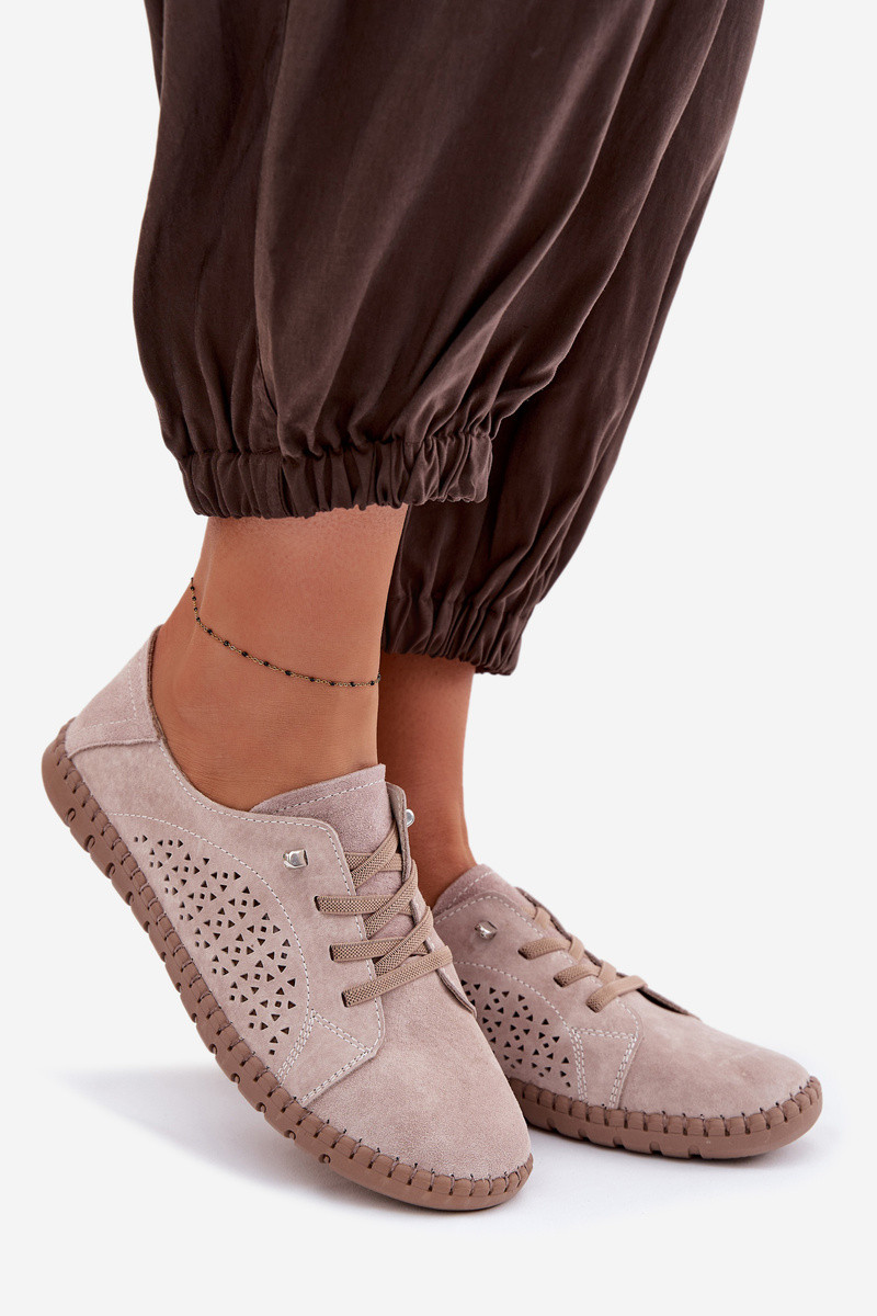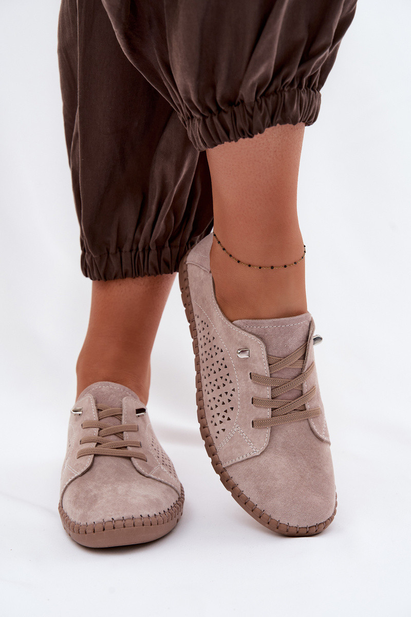 Moteriški batai su ažūriniais elementais iš natūralaus zomšo smėlio spalvos Feliva