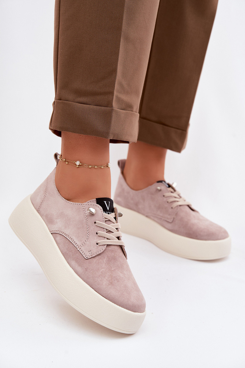 Zomšiniai moteriški batai su platforma Vinceza 79605 smėlio spalvos