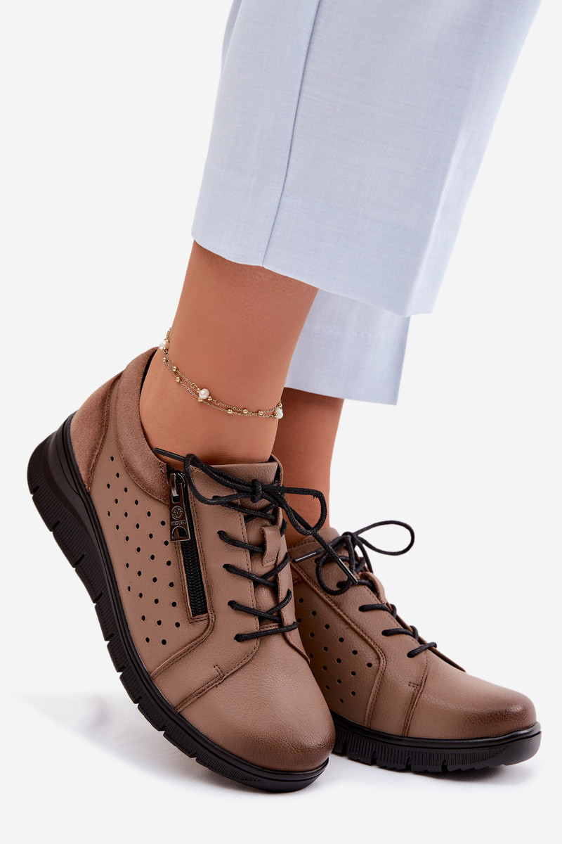 Odiniai moteriški batai su platforma Vinceza 39977 smėlio spalvos