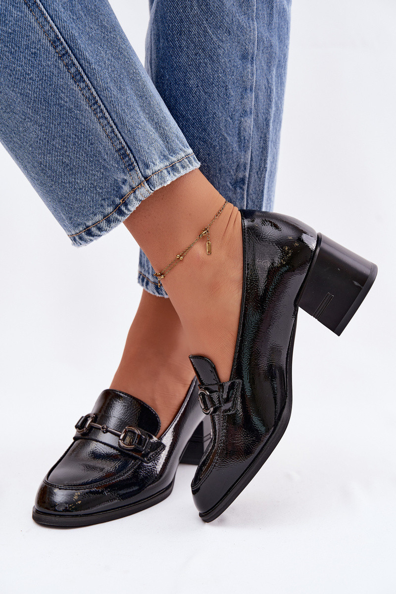 Lakuoti natūralios odos pusbačiai Moteriškas su kulniukais Vinceza 18116 juodos spalvos
