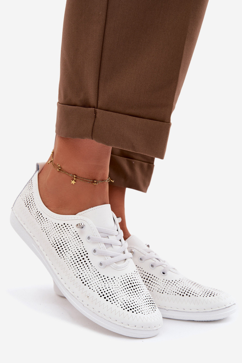 Moteriški odiniai batai su ažūro elementais S.Barski LR61-7083 baltos spalvos