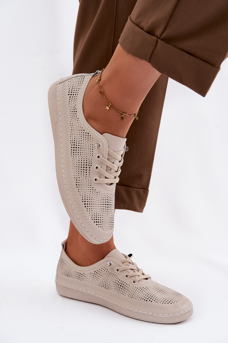 Moteriški odiniai batai su ažūro elementais S.Barski LR61-7083 smėlio spalvos