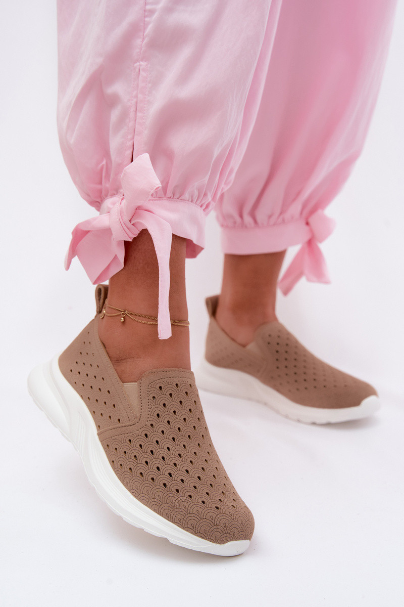 Įsispiriamo modelio su aužūro elementais batai MoteriškassuImitacji iš zomšosu smėlio spalvos Geressa