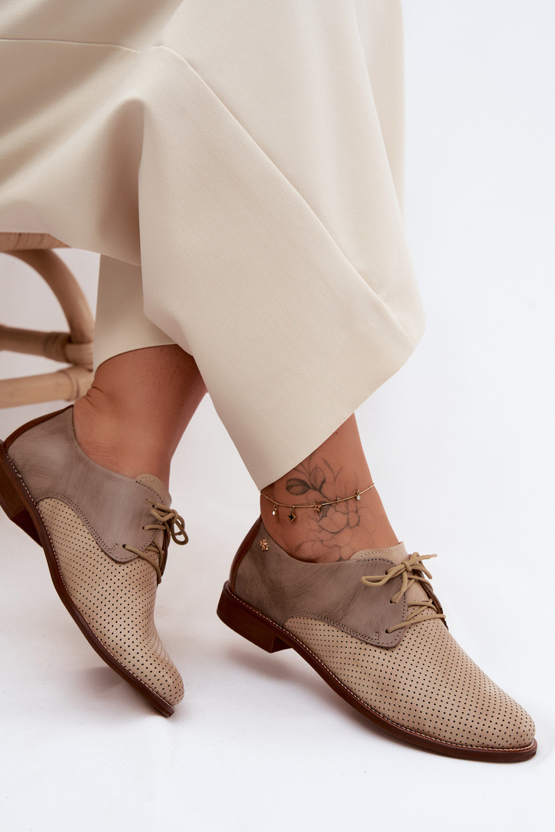 Auksinės spalvos elegantiški moteriški odiniai batai su raišteliais Zazoo 4238