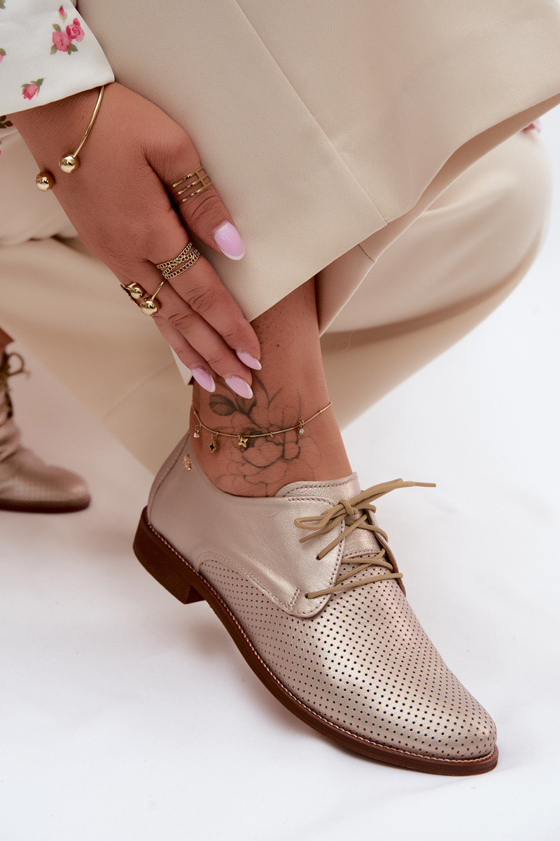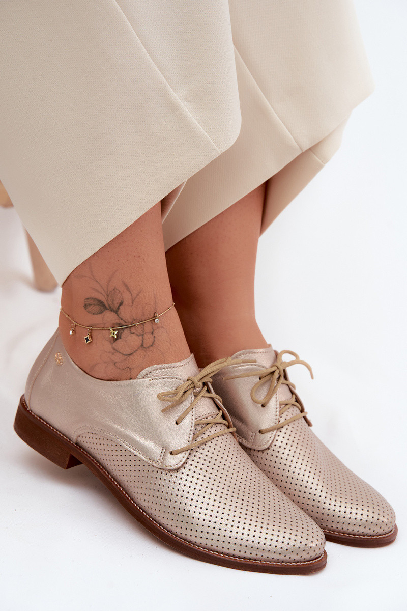 Smėlio ir rudos spalvos elegantiški moteriški odiniai batai su raišteliais Zazoo 4238