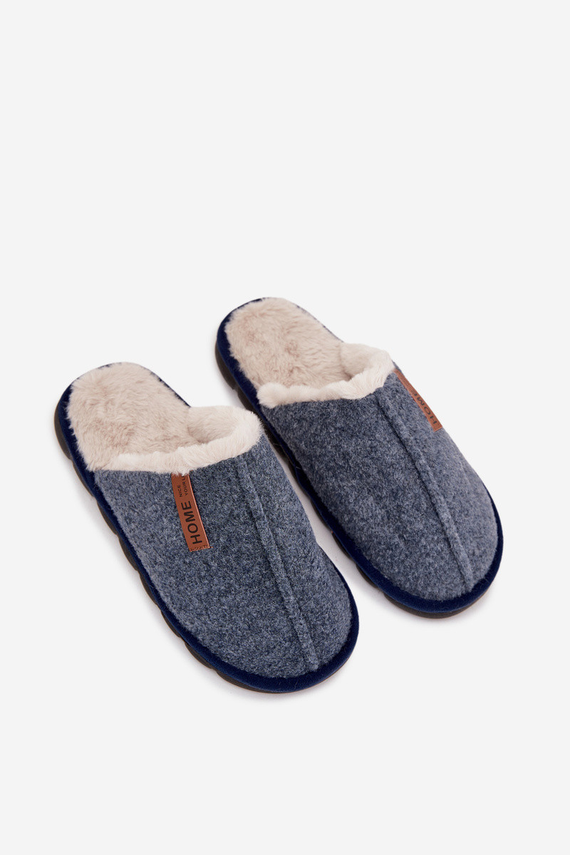 Vyriškos pašiltintos šlepetės su kailiuku viduje tamsiai mėlynos spalvos Darielle