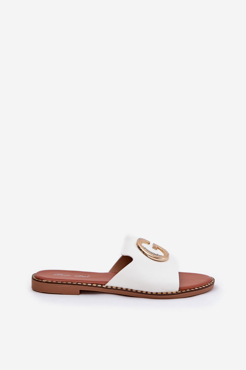 Dirbtinės odos lygiapadžiai moteriškos šlepetės su puošniais elementais baltos spalvos Frelie