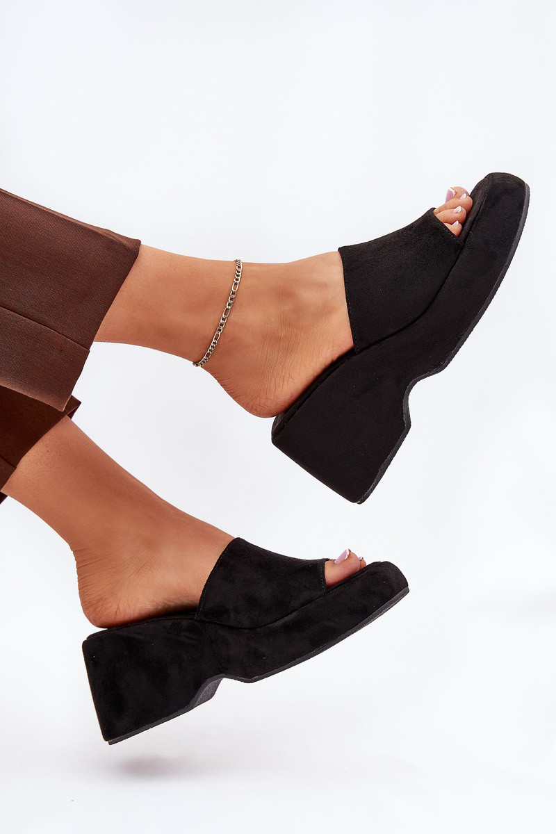 Moteriškos dirbtinio zomšo šlepetės su platforma juodos spalvos Afisal