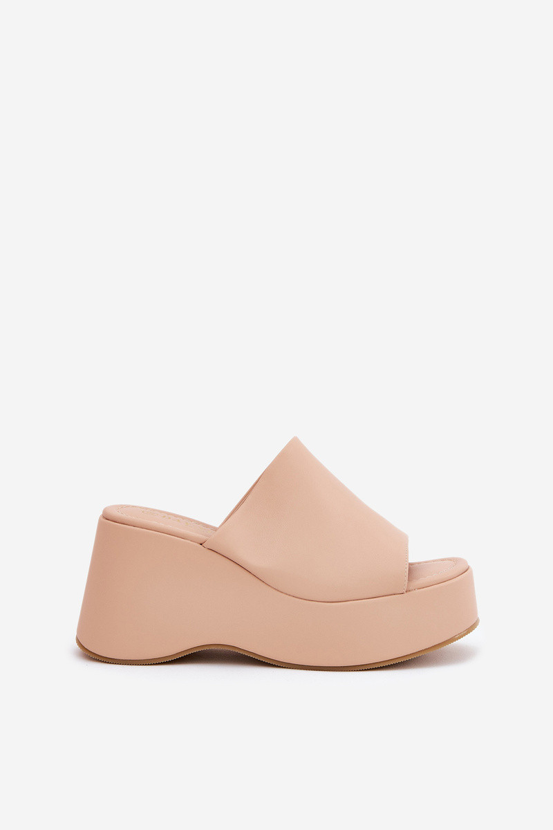 Dirbtinės odos šlepetės moterims su platforma smėlio spalvos