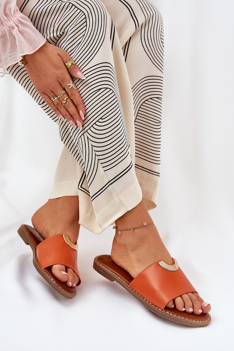 Moteriškos šlepetės iš dirbtinės odos su puošniomis detalėmis oranžinės spalvos Mevith