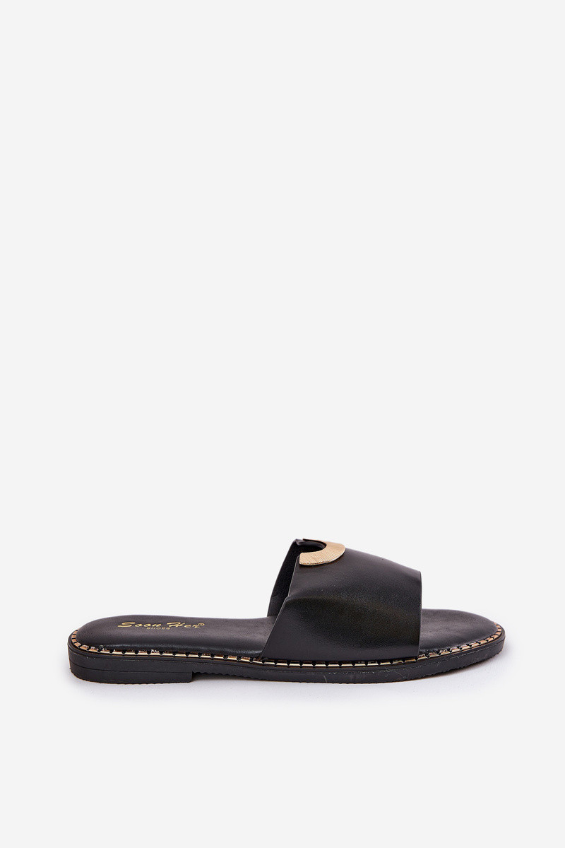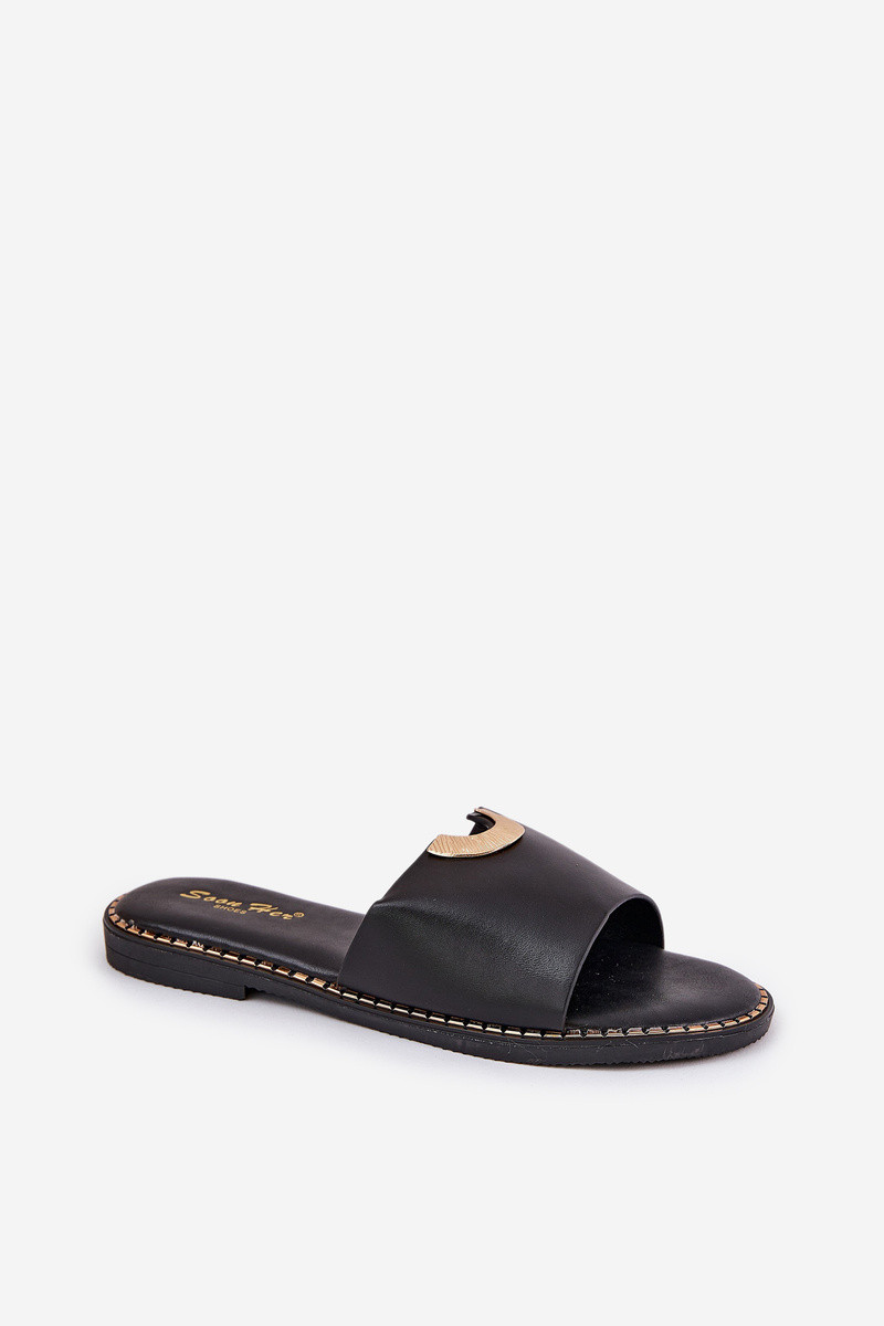 Moteriškos šlepetės iš dirbtinės odos su puošniomis detalėmis juodos spalvos Mevith