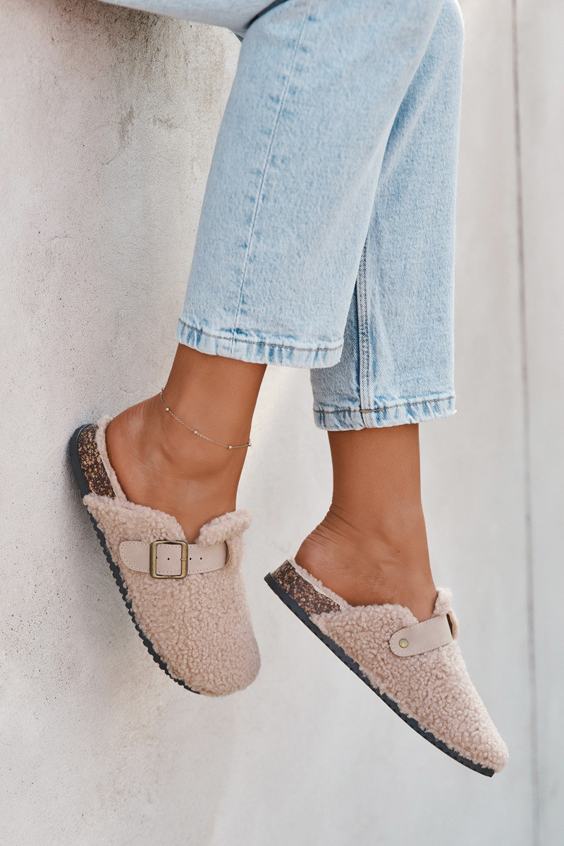Moteriškos šlepetės su kailiuku „Typu Baranek" smėlio spalvos „Lorivine"