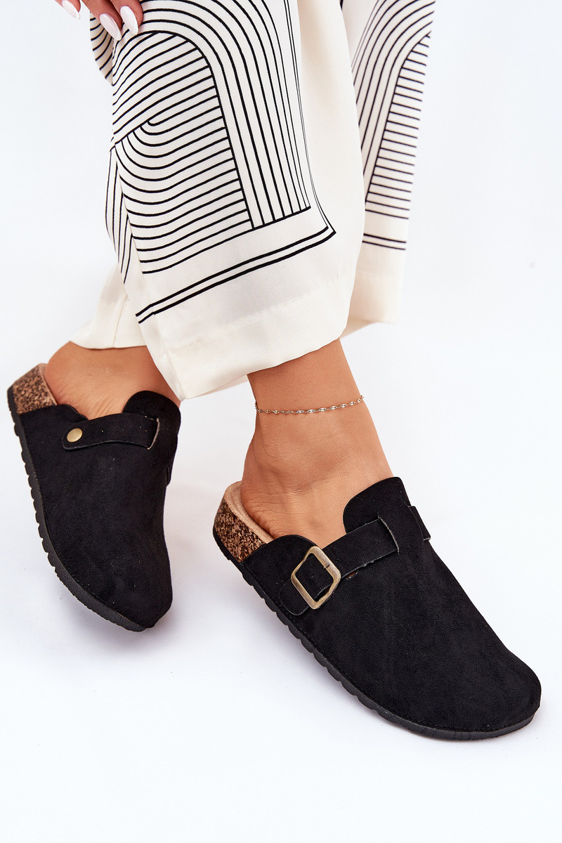 Šlepetės Klumpės Moteriškas i su platforma su sagtimis juodos spalvos Selio