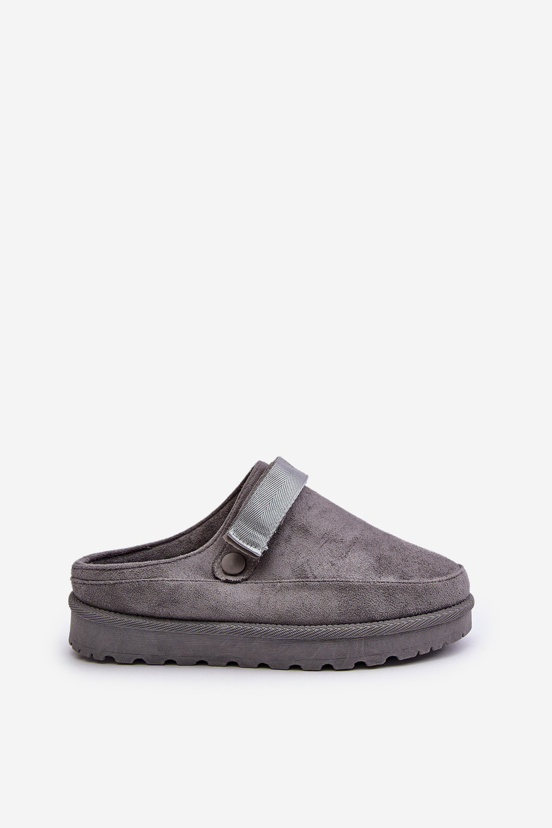 Moteriškos šiltos šlepetės su kailiuku viduje ir platforma, pilkos spalvos, Azida