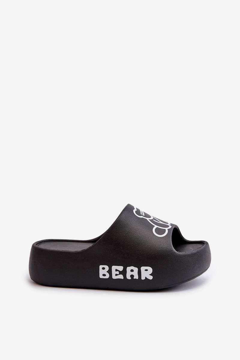 Lengvos šlepetės Moteriškos šlepetės su madingais masyviais padais Su Meškiuku juodos spalvos Lamira
