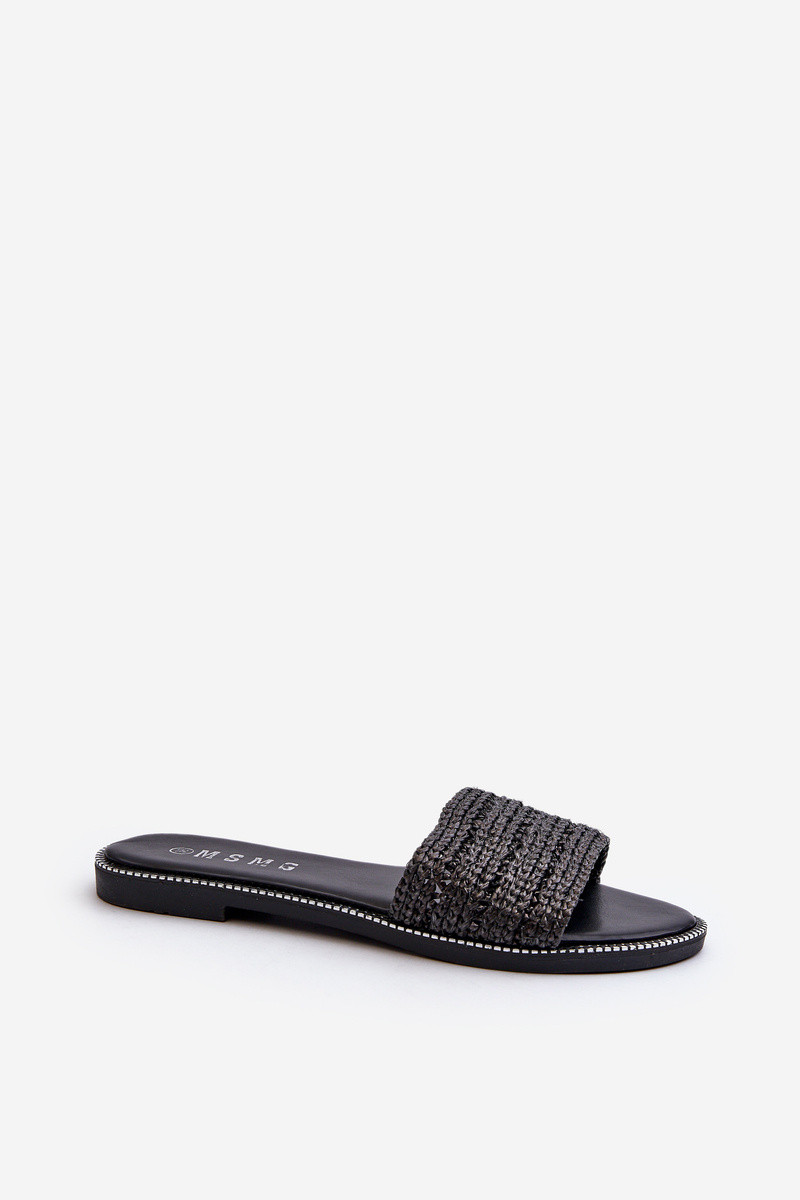 Moteriškos šlepetės Su Braid su plačiais kulniukais juodos spalvos Radians