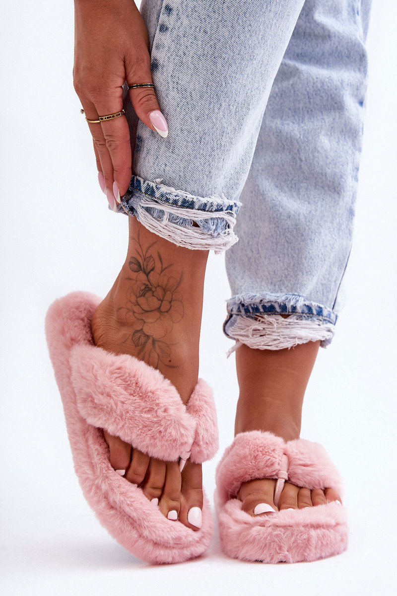 Moteriškos kailinės šlepetės rožinės spalvos Elma