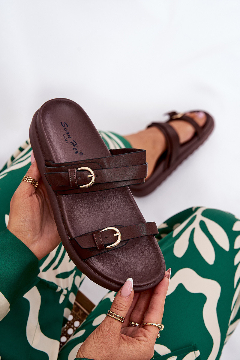 Moteriškos šlepetės su platforma Ze aukso spalvosmi su sagtimismi rudos spalvos INernone