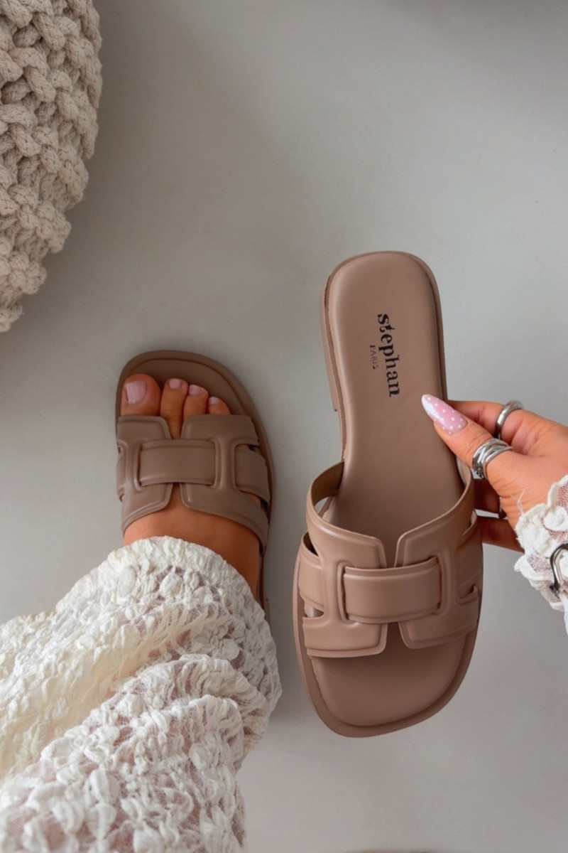 Moteriškos šlepetės su plačiais kulniukais smėlio spalvos Lorania