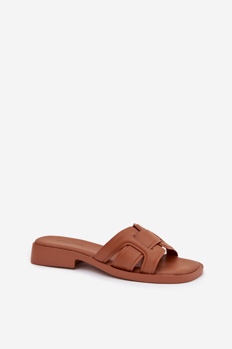 Moteriškos šlepetės su plačiais kulniukais rudos spalvos „Lorania"