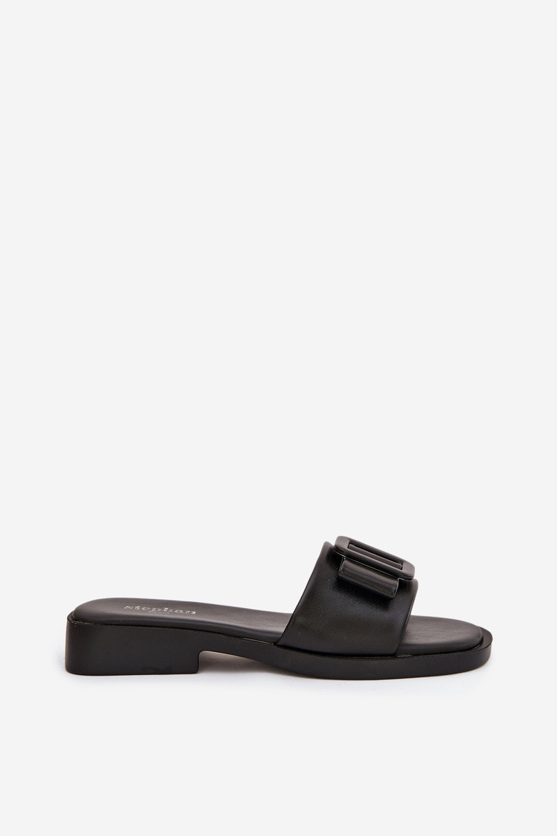 Moteriškos šlepetės su plačiais kulniukais ir sagtimis juodos spalvos „Melivra"