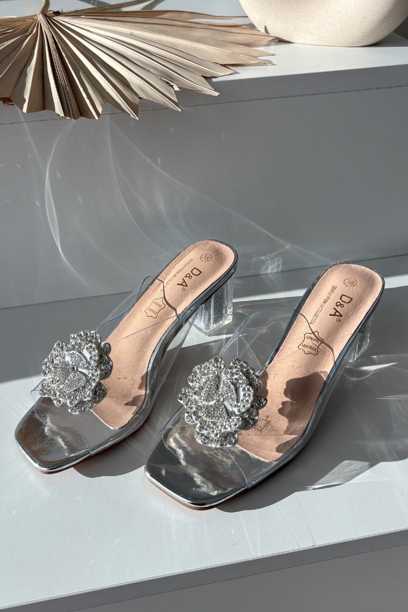 Sidabro spalvos perregimos šlepetės D&A MR1037-20 su kulniukais ir ornamentais