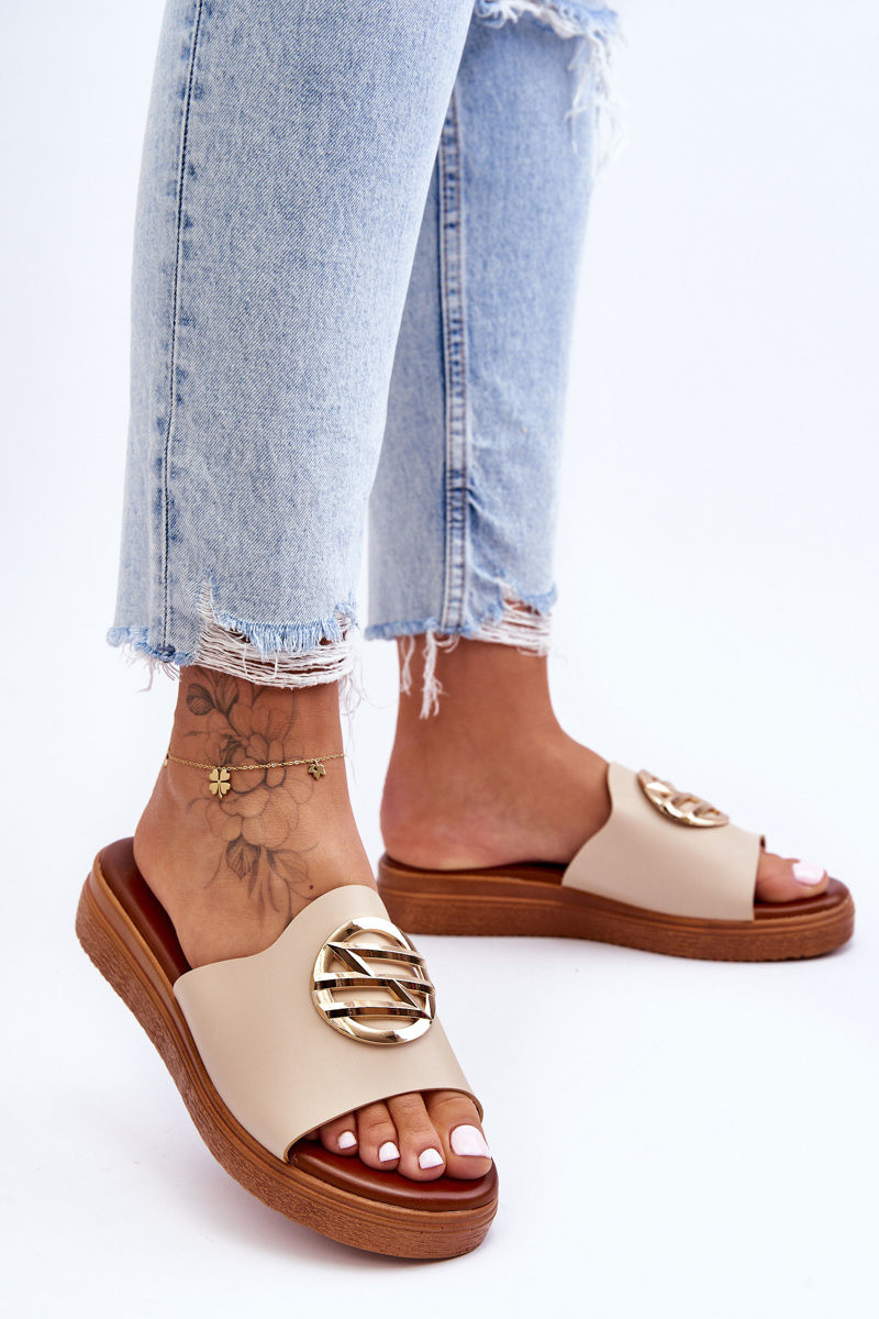 Moteriškas Šlepetės su ornamentais smėlio spalvos Secrets