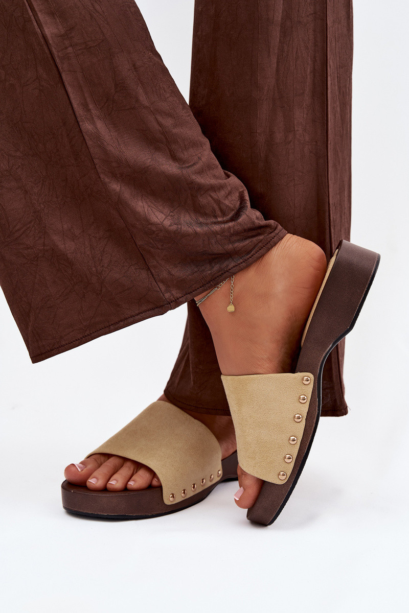 Moteriškos šlepetės su aukso spalvos smeigėmis geltonos spalvos Ferinna