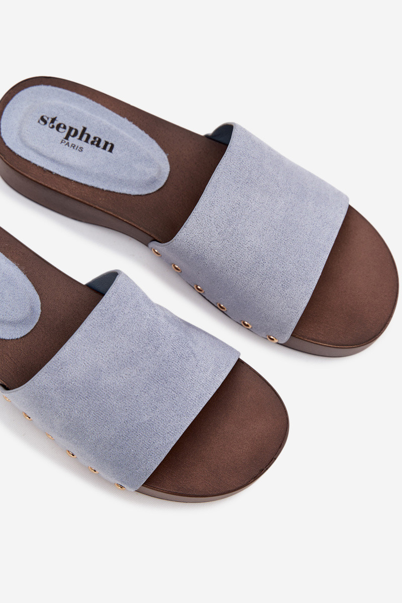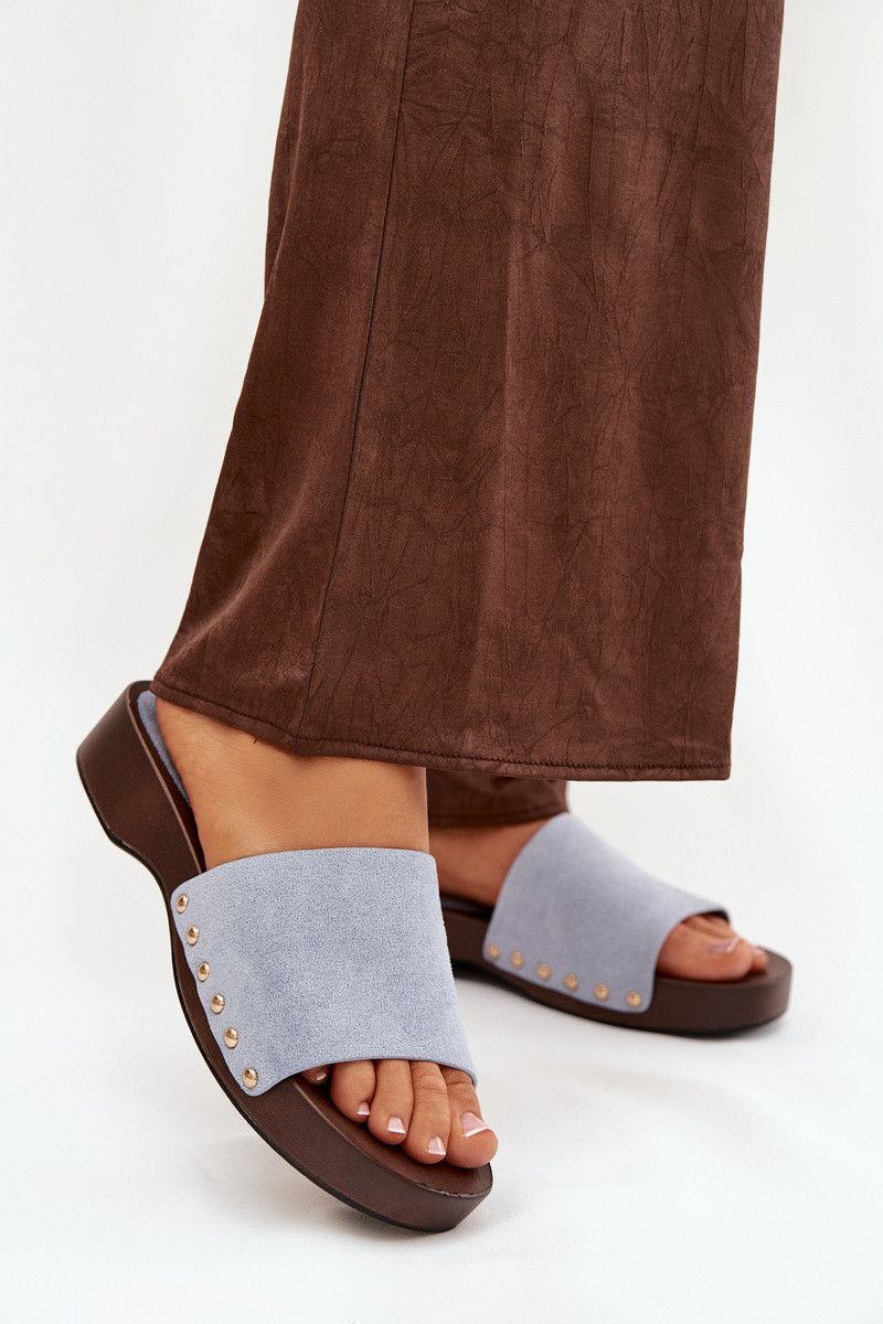 Moteriškos šlepetės su aukso spalvos smeigėmis mėlynos spalvos Ferinna