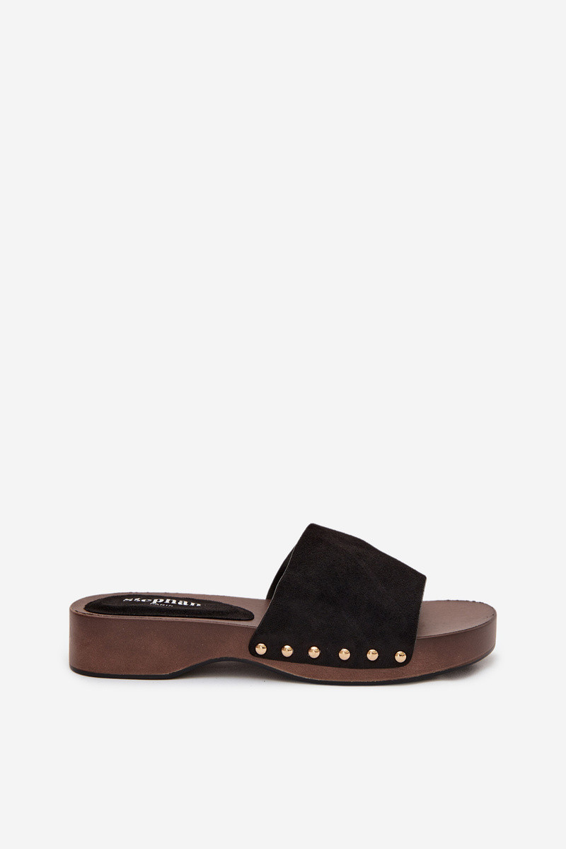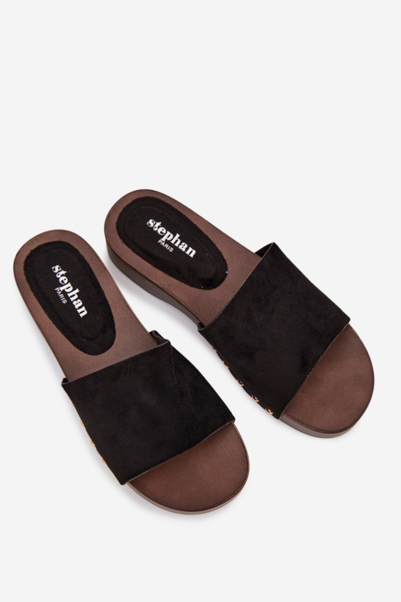 Moteriškos šlepetės su aukso spalvos smeigėmis juodos spalvos Ferinna