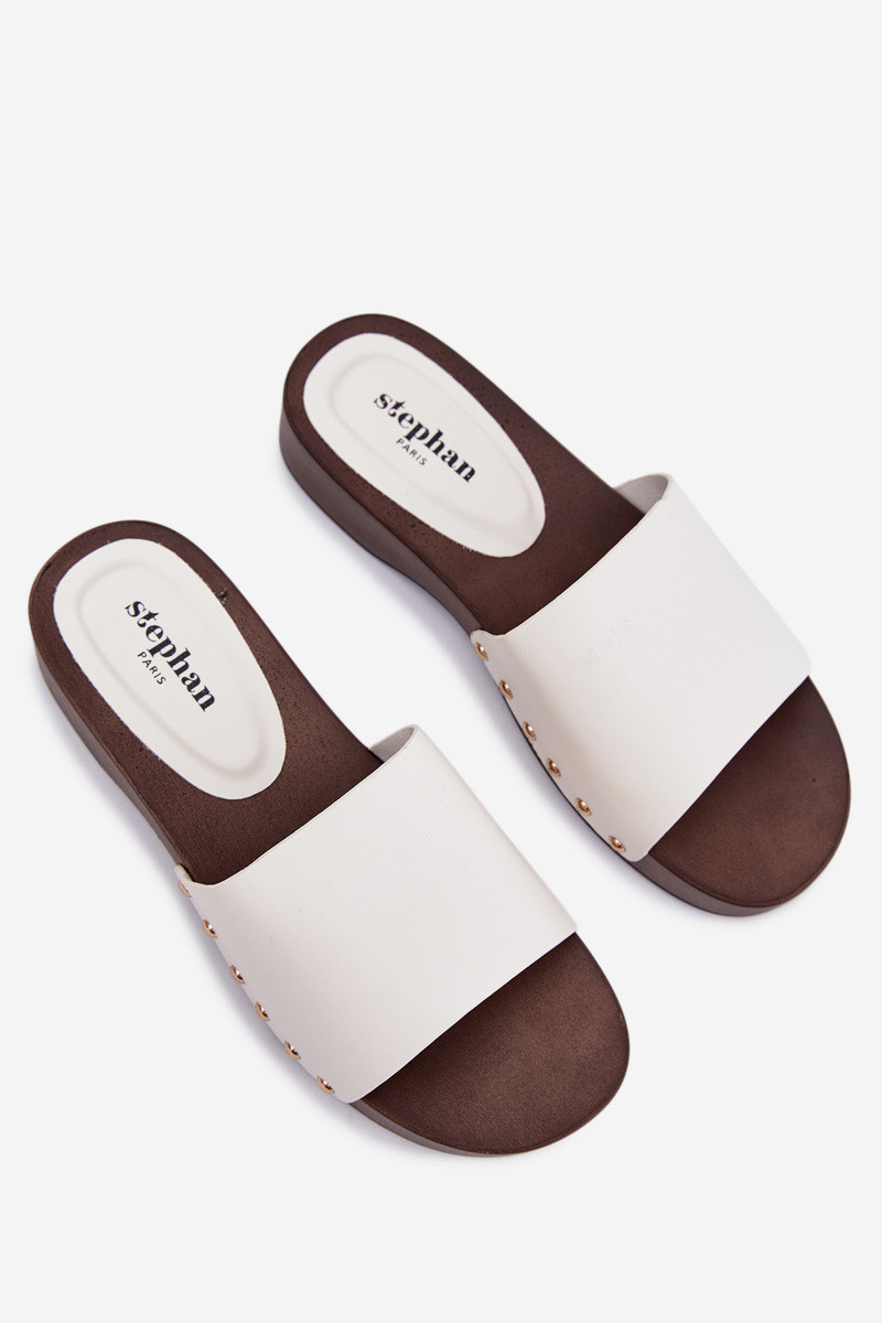 Moteriškos šlepetės su kniedėmis baltos spalvos Terissa