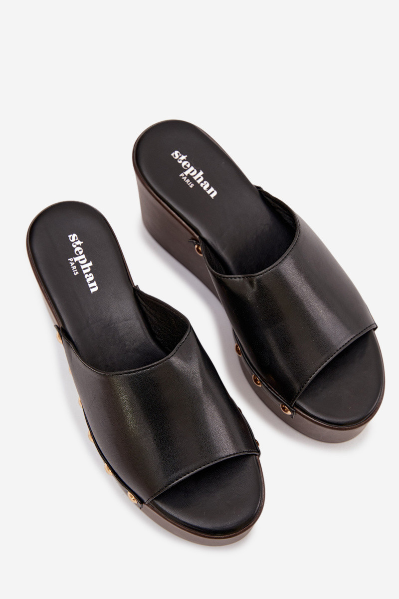 Moteriškos šlepetės ant platformos su kniedėmis juodos spalvos Taireline