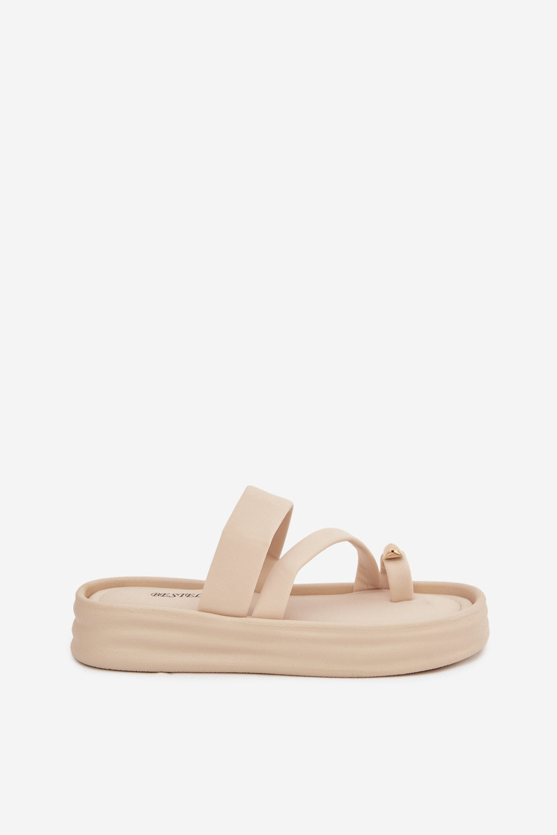 Moteriškos dramblio kaulo spalvos šlepetės su juostelėmis ir aukso spalvos detalėmis Farielle