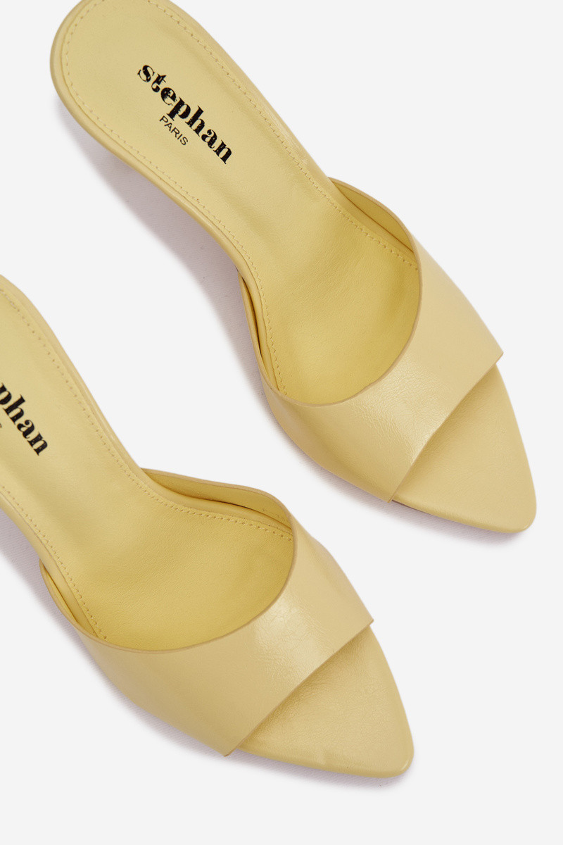 Moteriškos geltonos spalvos lakuotos šlepetės su kulniukais Lirissa
