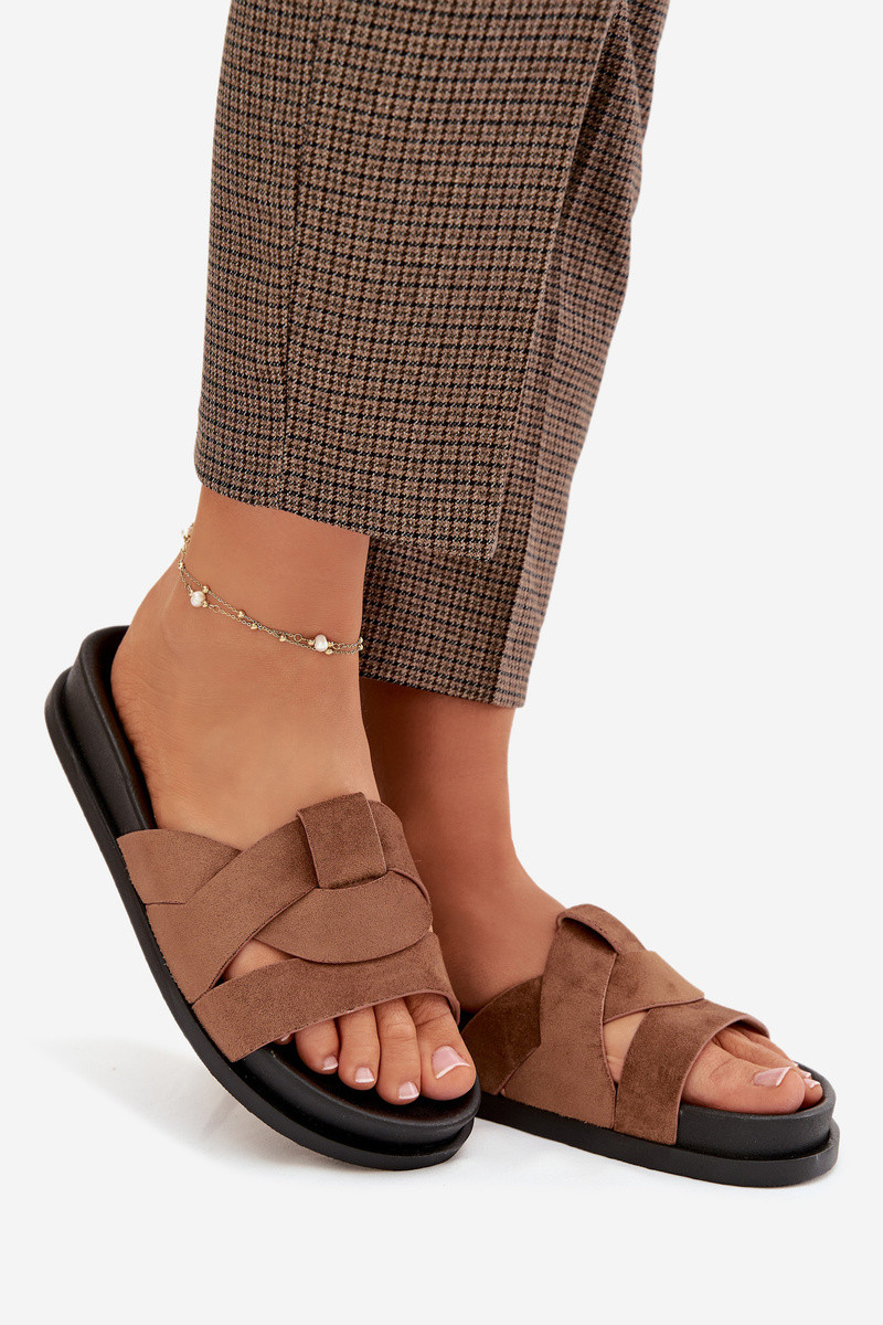 Moteriškos rudos spalvos šlepetės iš dirbtinio zomšo su juostelėmis Tai turirivessa