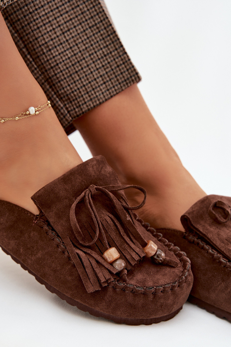 Moteriškos šlepetės Mule su kutais koralinės ir šokoladinės spalvos Belissa