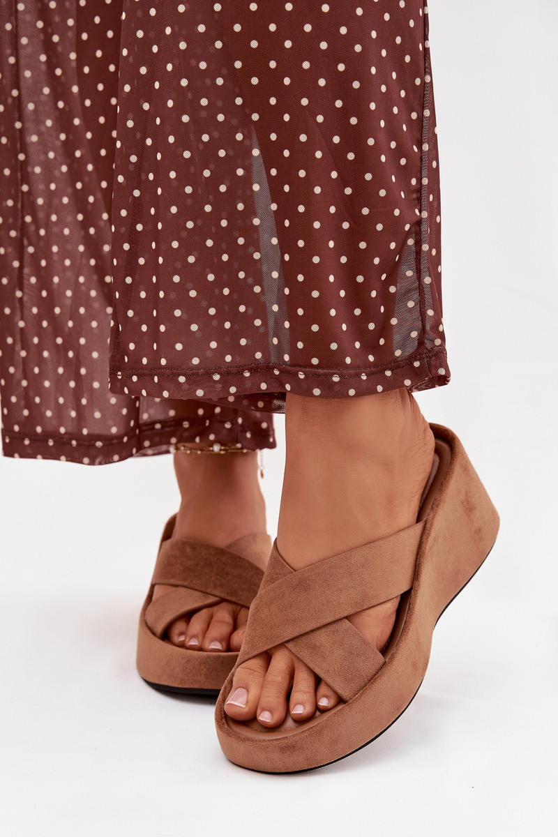 Rudos spalvos moteriškos šlepetės ant platformos iš dirbtinio zomšo „Calorine"
