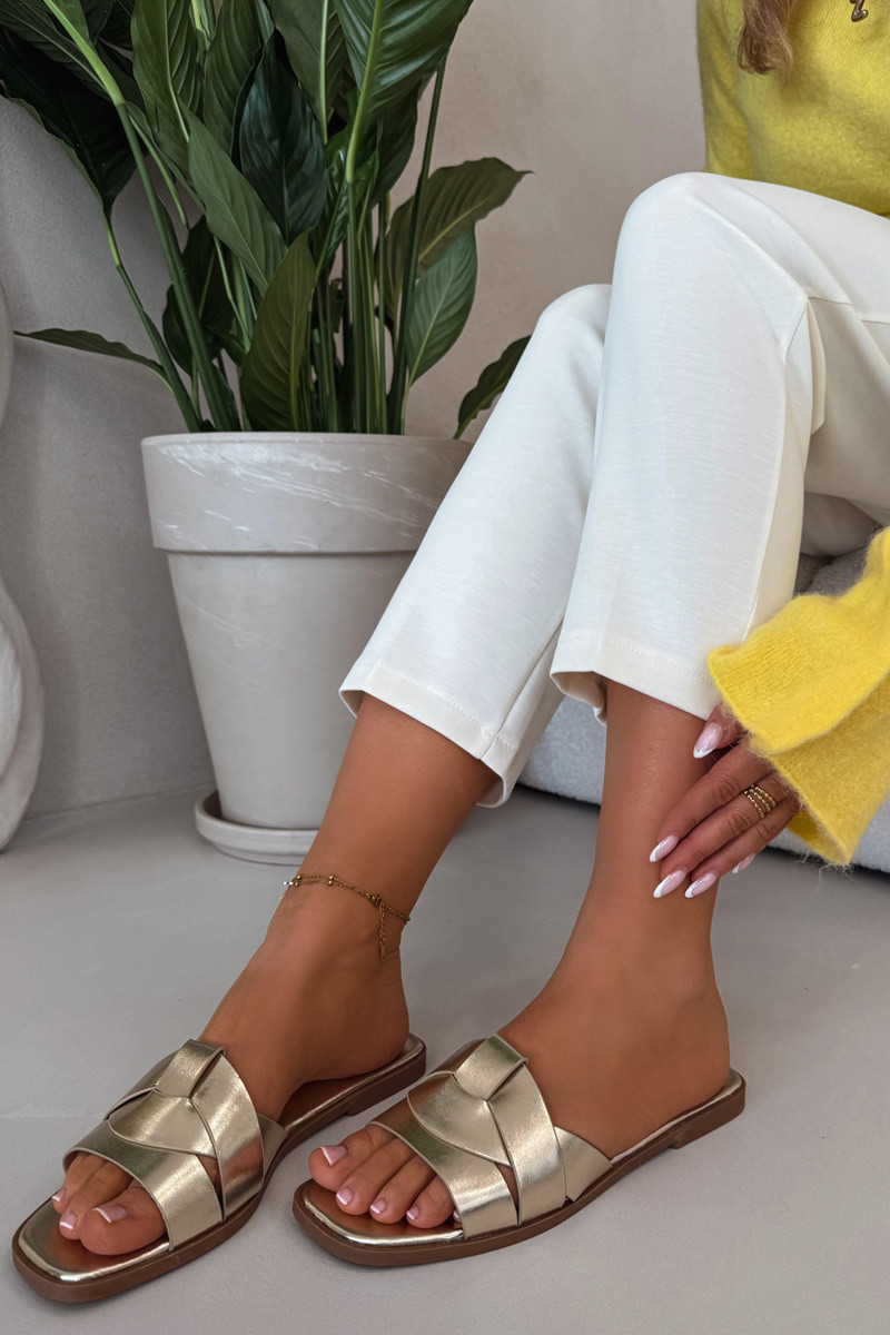Šlepetės Moteriškas butas su juostelėmis aukso spalvos Tai turirissae
